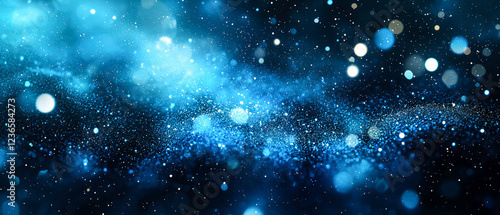 Fototapeta premium Blue shimmering lights, sparkling, bokeh, glowing on blurred neon background. Abstract sturdust background. Generative ai