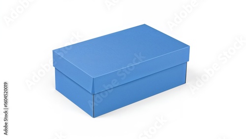 © AkuAku, Fototapeta premium Blue shoe storage box displayed on a clean white background with clipping paths.