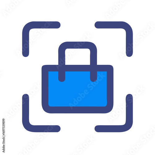 Fototapeta premium Blue shopping bag icon with a focus square frame