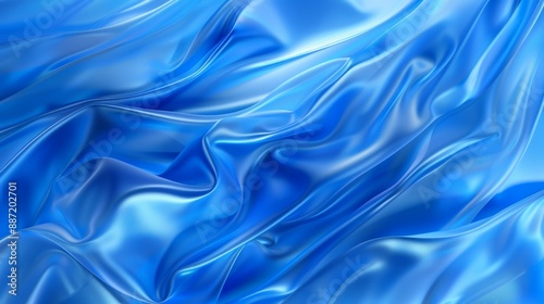 Obraz premium Blue silk fabric drapes and flows, creating soft, subtle waves and a...