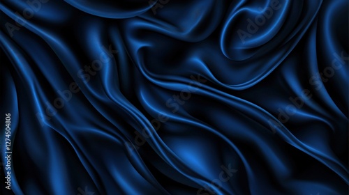 Obraz premium Blue silk fabric drapes, elegant waves, dark background, luxury textile, design element