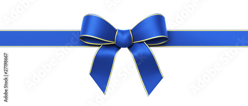 Fototapeta premium Blue silk ribbon with golden edges panorama