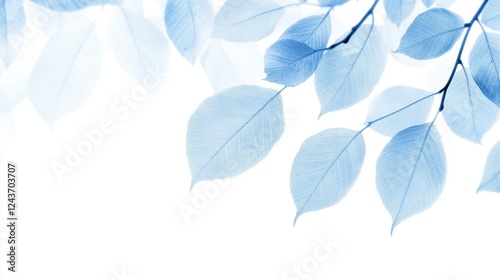 © Riz, Obraz premium Blue Skeleton Leaves on White Background