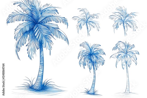 © dwiki, Fototapeta premium Blue Sketch Palm Trees.