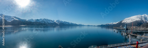 Naklejka premium Blue skies and bright sun in Seward harbor, Alaska, USA