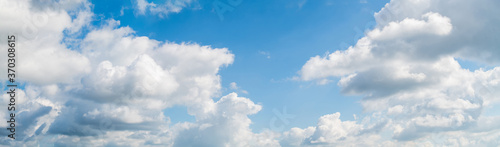Fototapeta premium Blue skies on a clear day. White cumulus clouds float across the sky.
