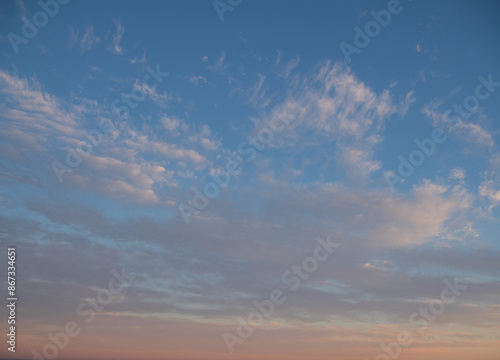 © Ulia Koltyrina, Obraz premium Blue sky after rain,. Beautiful Cumulus clouds flying across the sky,