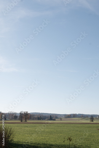 Fototapeta premium Blue sky and beautiful cloud with meadow tree. Plain landscape background for...