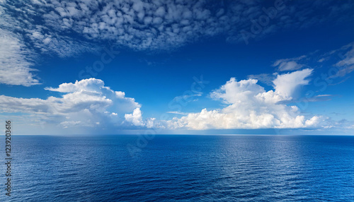 Obraz premium blue sky and beautiful fluffy clouds in a sunny day over the ocean