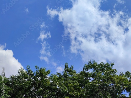 Obraz premium Blue sky and clouds over the forest