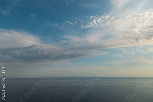 © Plutmaverick, Obraz premium Blue sky and endless sea. View of the open ocean.
