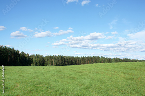 © Popova Olga, Fototapeta premium Blue sky and green field