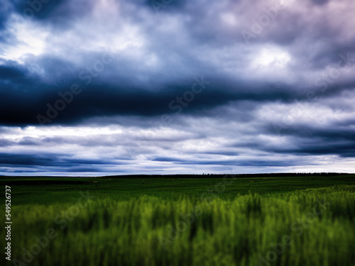 © ArtificialWorld, Obraz premium Blue sky and green fields, generated by A.I.