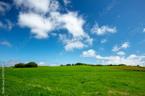 © 多田 智, Fototapeta premium Blue sky and green hills