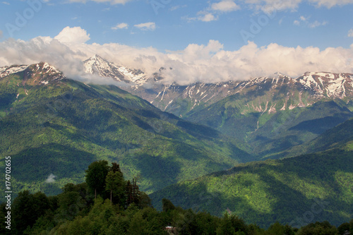 © metelevan, Naklejka premium blue sky and mountain peaks