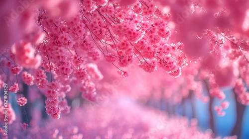 Naklejka premium Blue sky and weeping cherry close-up, generative ai
