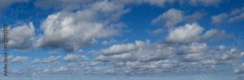 Fototapeta premium Blue sky and white clouds, wide panorama