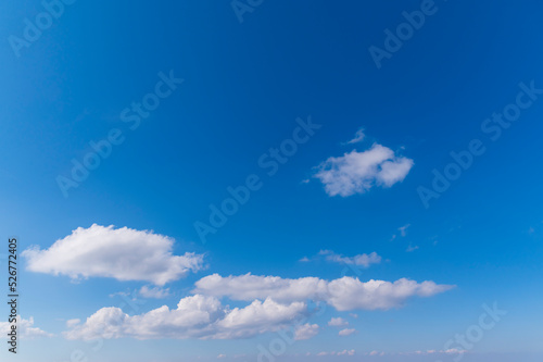 Obraz premium Blue sky and white fluffy tiny clouds background and pattern
