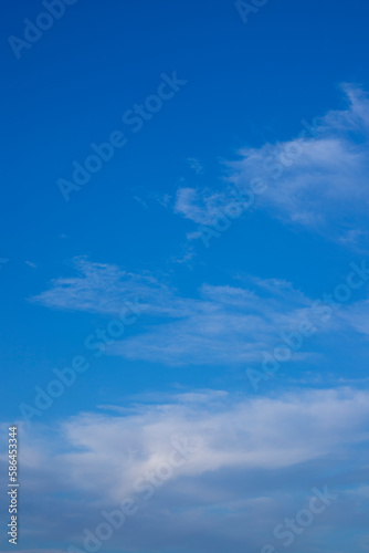 Fototapeta premium Blue sky background and white clouds soft focus and copy space. Vertical shot
