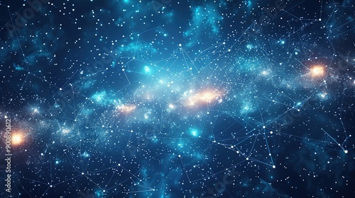 © Dawna, Naklejka premium Blue Sky Background Featuring Abstract Digital Network and Global Links