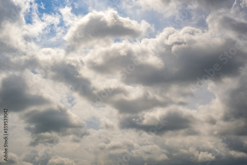© hiv360, Fototapeta premium Blue sky background with big white tiny stratus cirrus striped clouds