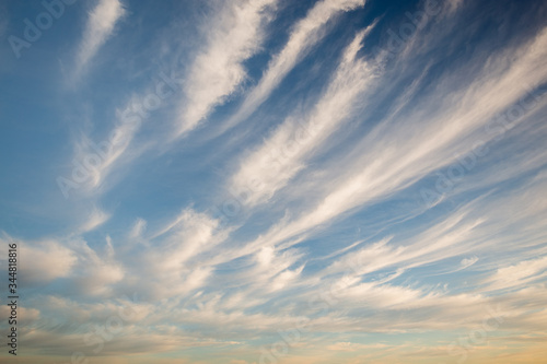 Obraz premium Blue sky background with cirrus clouds, clouds pattern