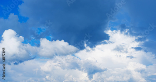 Fototapeta premium Blue sky background with clouds. Close up.