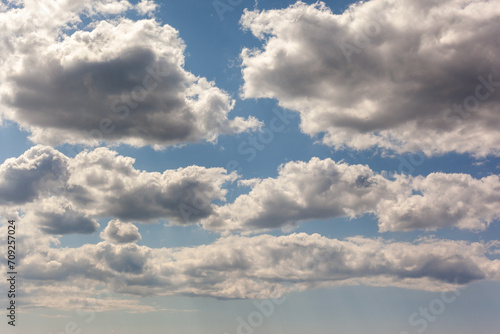 Obraz premium Blue sky background with clouds. Horizontal photo.