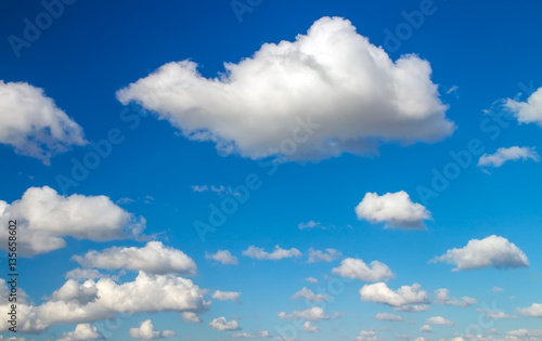 Fototapeta premium Blue sky background with fluffy clouds