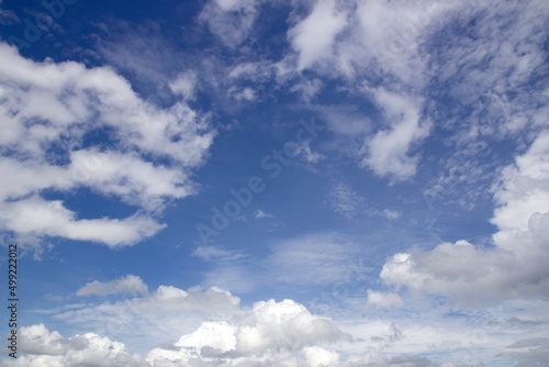 © jamroenjaiman, Obraz premium blue sky background with small clouds
