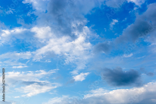 © Sergey Fedoskin, Obraz premium Blue sky background with tiny clouds.