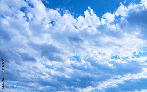 Fototapeta premium Blue sky background with white clouds on a sunny day.