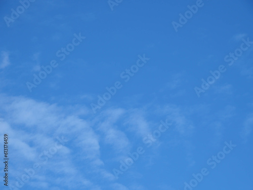 © sutas, Fototapeta premium Blue sky background with white clouds shaped like fish tails.