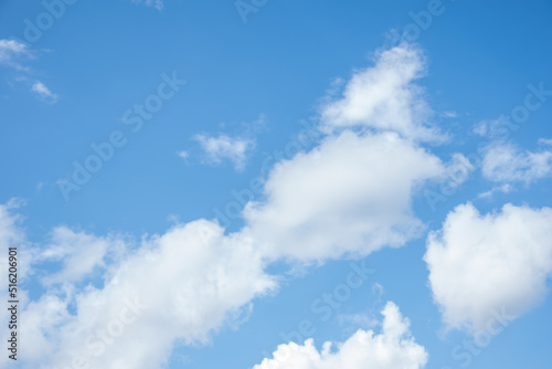Fototapeta premium Blue sky background with white fluffy cumulus clouds. Panorama of white...