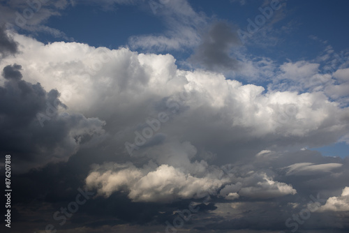 Obraz premium Blue sky. Beautiful Cumulus clouds flying across the sky,