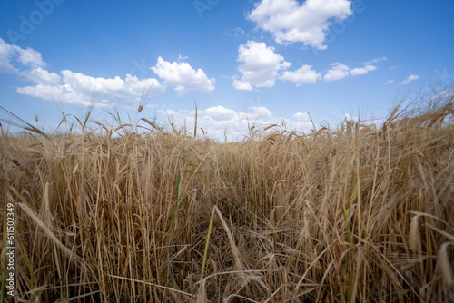 © Erman Gunes, Obraz premium Blue sky, clouds and yellow wheat field