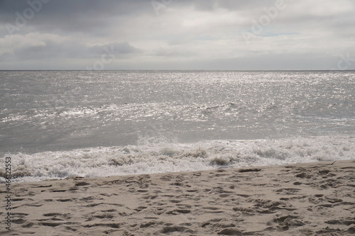 © Monica, Fototapeta premium Blue Sky Clouds Gently Breaking Surf on the Beach