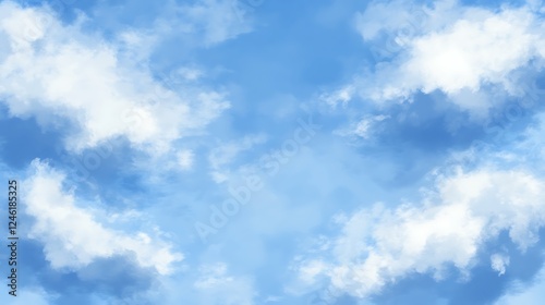 Naklejka premium Blue sky, fluffy clouds, daytime, background, design