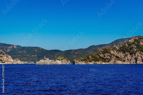 Naklejka premium blue sky, high mountains and blue sea of Turkey