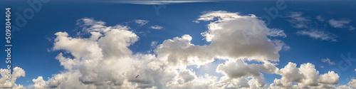 Obraz premium Blue sky panorama with puffy Cumulus clouds. Seamless hdr pano in spherical...