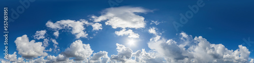 Obraz premium Blue sky panorama with puffy Cumulus clouds. Seamless hdr pano in spherical...