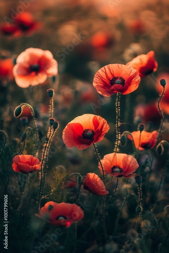 Obraz premium Blue sky, red poppies and wildflowers