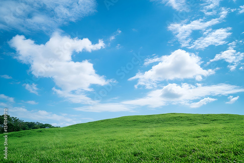 © Zain, Obraz premium Blue sky, tea garden, stock photo, full-frame, landscape photography, green grass on the ground, tea tree forest, green hills with trees.