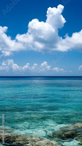 Fototapeta premium Blue Sky White Clouds and Blue Sea