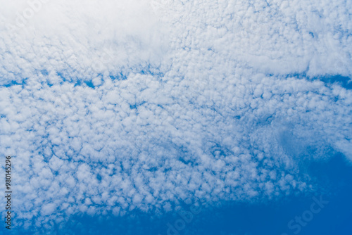 © be free, Obraz premium blue sky with a clouds. Clear blue sky panoramic background with small white clouds. Partly cloudy. White fluffy clouds in the blue sky.