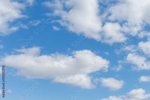 © Chmutphoto, Fototapeta premium Blue Sky with Clouds and Bird Soaring High
