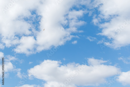 © Chmutphoto, Fototapeta premium Blue Sky with Clouds and Bird Soaring High