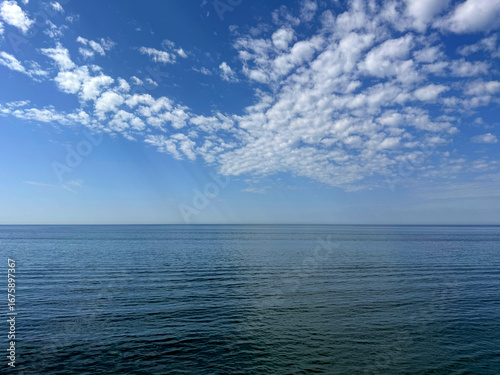 © OLENA LIALINA, Fototapeta premium Blue sky with clouds and blue calm sea.