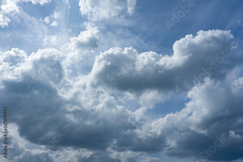 © Alex, Fototapeta premium Blue sky with clouds and sun.