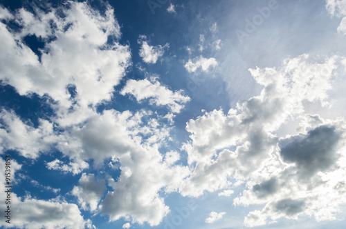 © sakchaiphoto, Obraz premium blue sky with clouds closeup and sun light